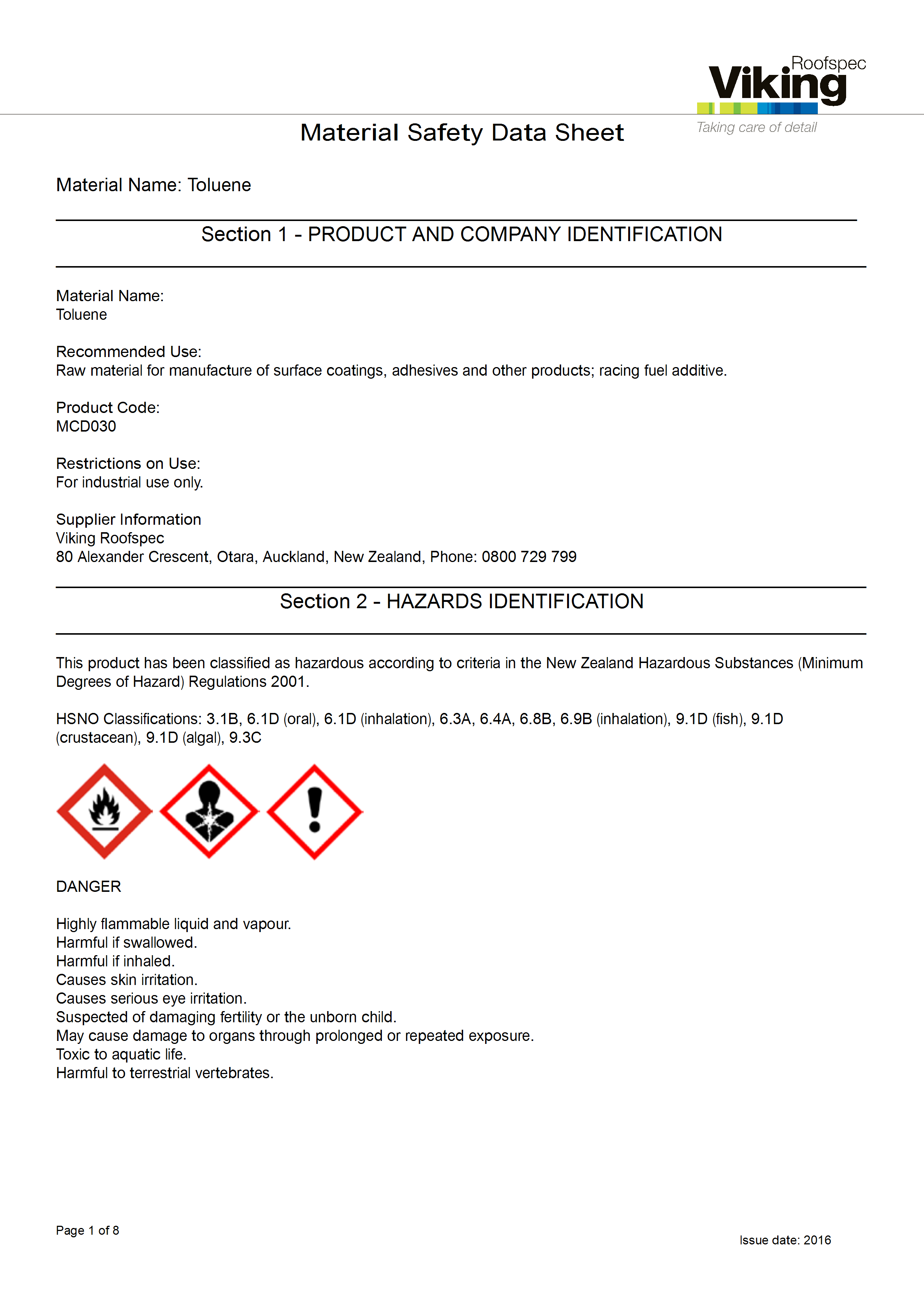 Surface Sealer Part A MSDS